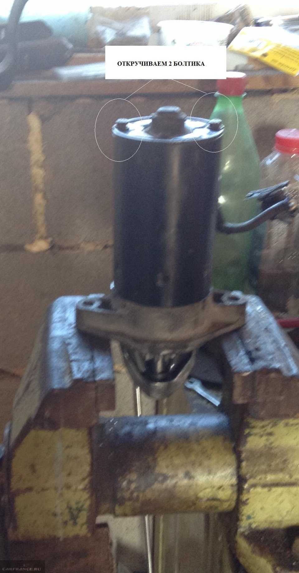 - После этого, используя гаечных ключей на 13 и 10, нужно выкрутить гайки 1 и 2 соответственно, они показаны на фото. Сделав это, вы сможете отключить контактный разъем втягивающего реле.