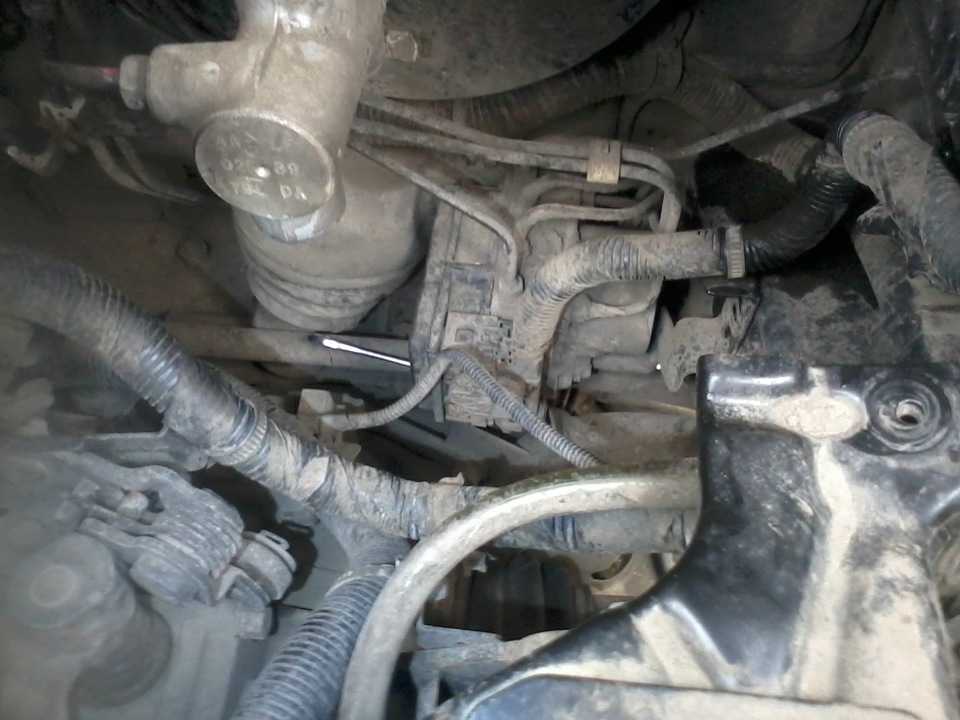 Отсоедините от аккумулятора провод массы. Отлепите пружинные зацепы крепления верхнего кожуха привода системы газораспределения. Установите автомобиль на стационарном подъемнике. Отвинтите болт крепления нижнего кожуха зубчатого ремня, затем ослабьте второй болт и поверните вокруг ослабленного болта кожух вниз. Опустите автомобиль и снимите верхний кожух привода системы газораспределения. Обозначьте положение троса педали акселератора на рычаге топливного насоса и отцепите от него трос. Отвинтите болт крепления рычага и извлеките трос.