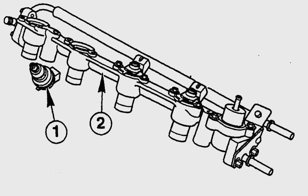 Рис. 8.5. Топливный распределительный трубопровод (2) с форсунками (1) |