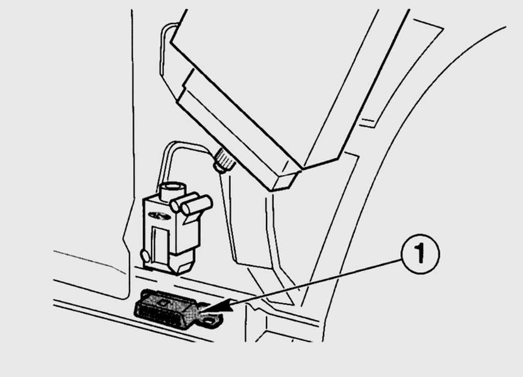 Рис. 8.7. Расположение диагностического разъема (1) в нижней части левой передней стойки |