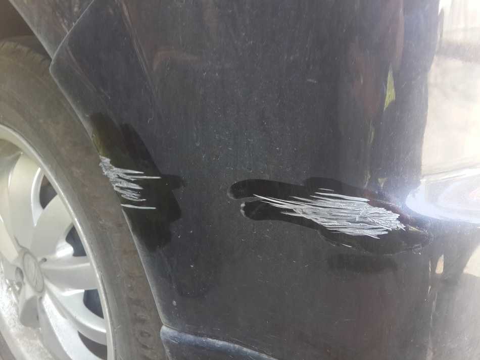 - аккуратно закрасить царапину — карандашом нужно как бы штриховать поверхность бампера;
