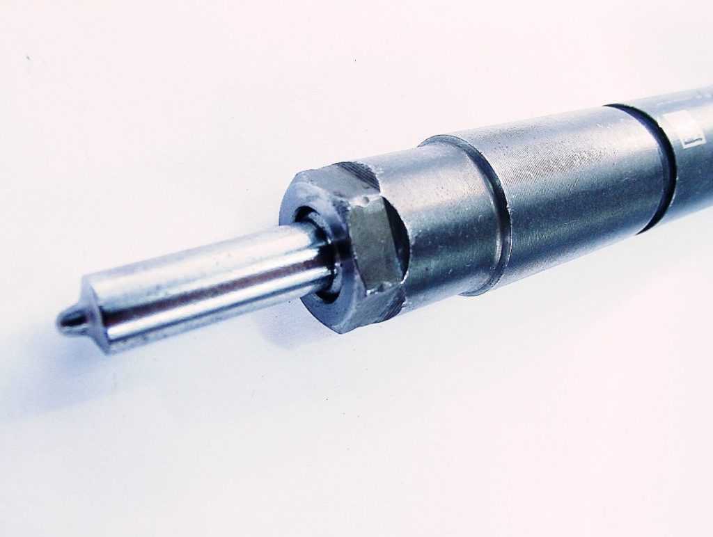 Конструкционно распылители всех типов форсунок похожи. Так, эта часть форсунки всегда состоит из корпуса и иголки. Корпус выполнен в цилиндрической форме, по оси которого вставляется игла (в форсунках Коммон Рейл иголка вставлена внутрь канала). Деталь системы имеет сверхточную обработку: зазор между иголкой и каналом не превышает 1–2 мкм.