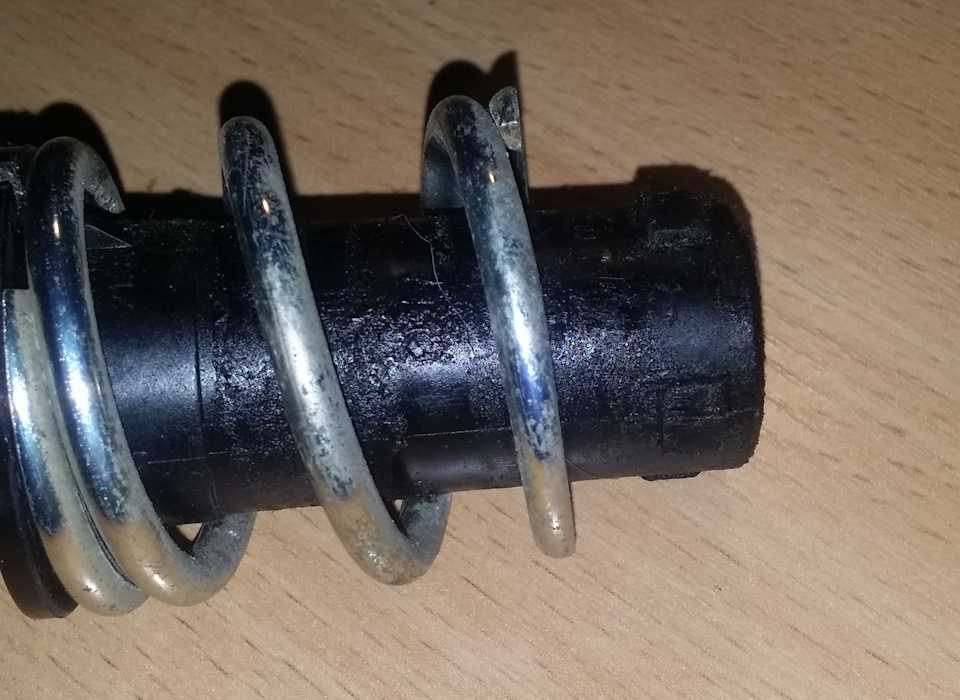 Уже на разобранной конструкции становится очевидно, что поворачивать нужно на 90 градусов по часовой стрелке, сжав пружину на один сантиметр.