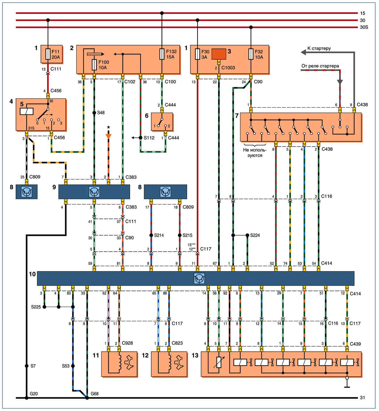 13.11. Ford Focus II. Схемы электрооборудования. Схемы включения отопления, вентиляции, кондиционирования. Аудиосистема и система управления