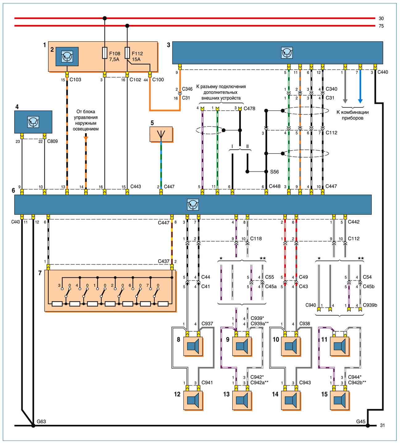 СХЕМА СОЕДИНЕНИЯ АУДИОСИСТЕМЫ