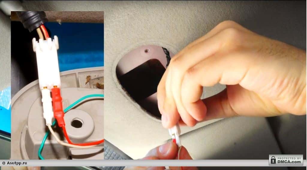 Для снятия плафона отсоединяем колодки проводов от разъема плафона.