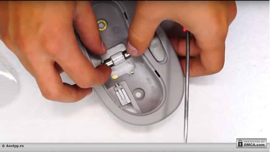 …шлицевой отверткой поддеваем фиксирующую пружину спереди.