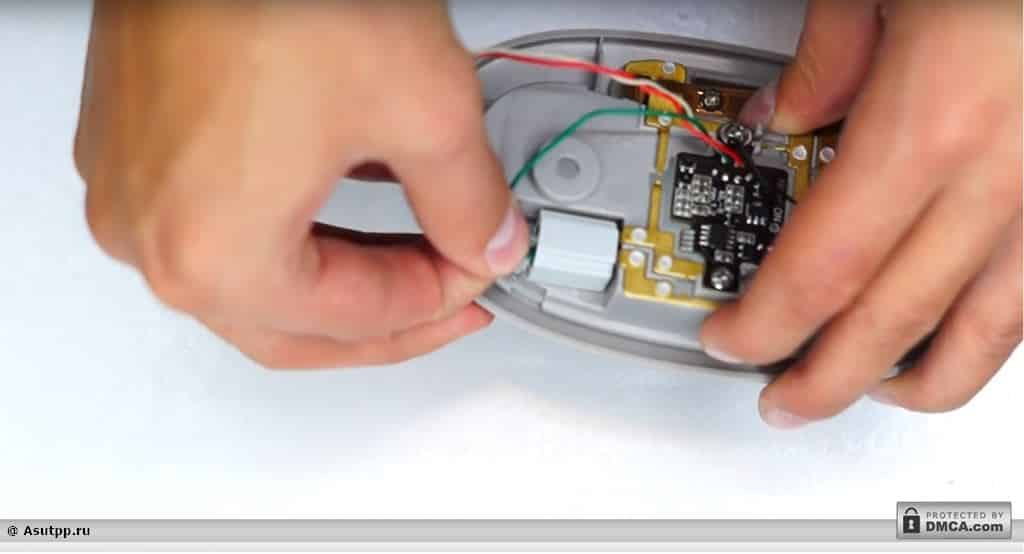 Пришлось взять шуруповерт с небольшим сверлом и просверлить два отверстия для минуса и плюса. Воткнул провода в новые отверстия, скрутил, припаял для надежности. Непременно соблюдаем полярность, минус к минусу, плюс к плюсу. Вышло так: