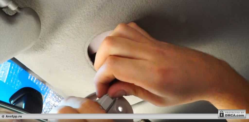 Перед выполнением работы необходимо отсоединить клемму провода от «минусового» вывода аккумуляторной батареи или выключить освещение салона.