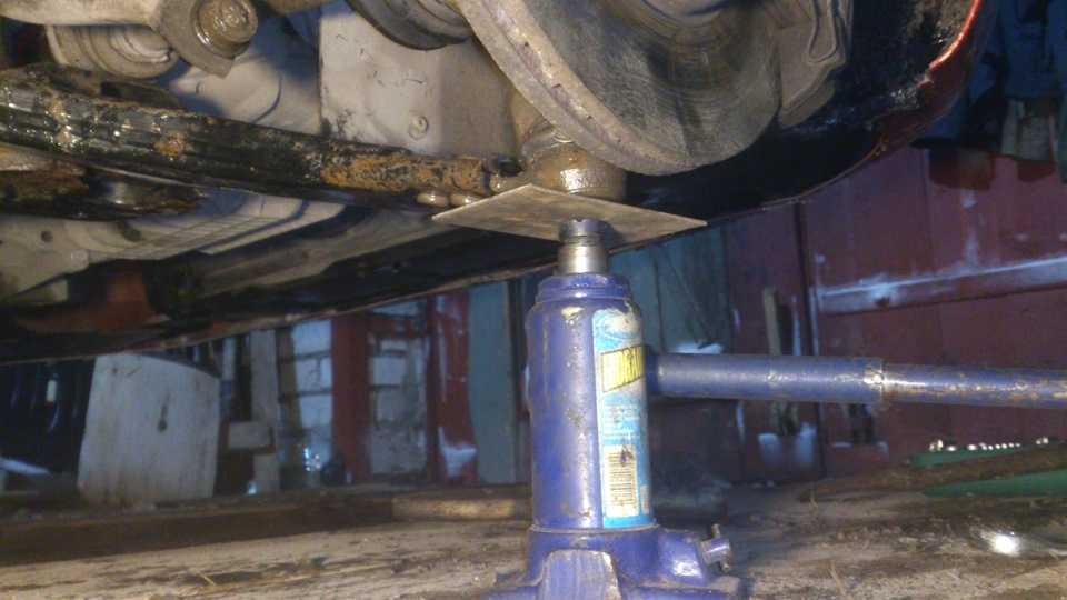 Описанные ниже работы проводятся на смотровой яме, но если вы воспользуйтесь подъемником, будет несколько удобнее и отпадет необходимость в домкратах.