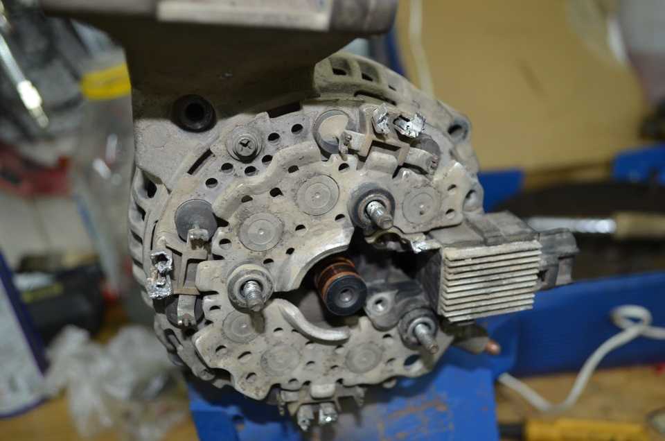 Помимо щеток, сняв заднюю крышку можно также поменять регулятор напряжения и выпрямительный мост.