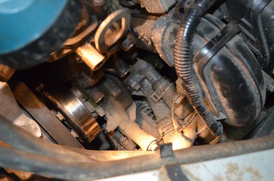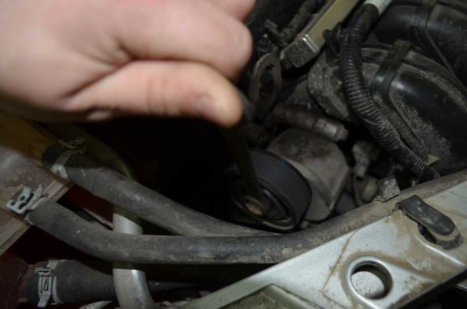 Снимите клемму аккумулятора и найдите натяжной ролик.