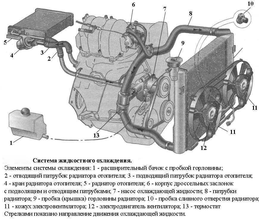 Устройство системы охлаждения двигателя внутреннего сгорания