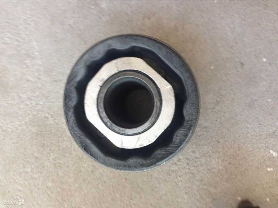 Полиуретановый сайлентблок значительно улучшит работу подвески и продлит срок её службы. Шарнир из полиуретана служит в разы дольше, чем резиновый. Не забывайте, что кривой развал — схождение также последствия износа сайлентблоков. Открутите болты крепления из рычагов и поперечин подвески задней оси, а потом демонтируйте задний нижний рычаг. Осмотрите сайлентблоки на предмет дефектов.