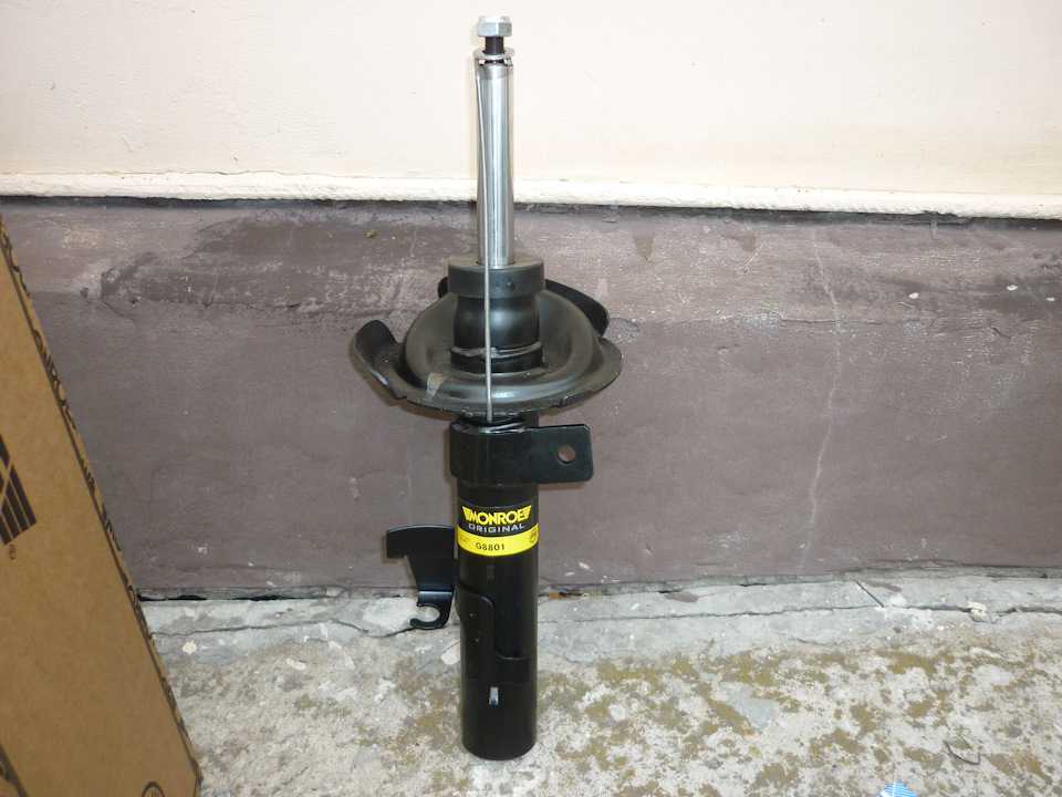 - Поставьте стойку с новым амортизатором на место и соберите все обратно.