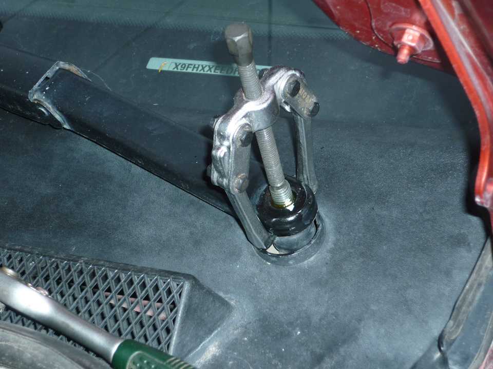 При выявлении любой неисправности необходимо снять стойку и освободить её от пружины. Демонтаж производится в гараже, без использования специального инструмента.