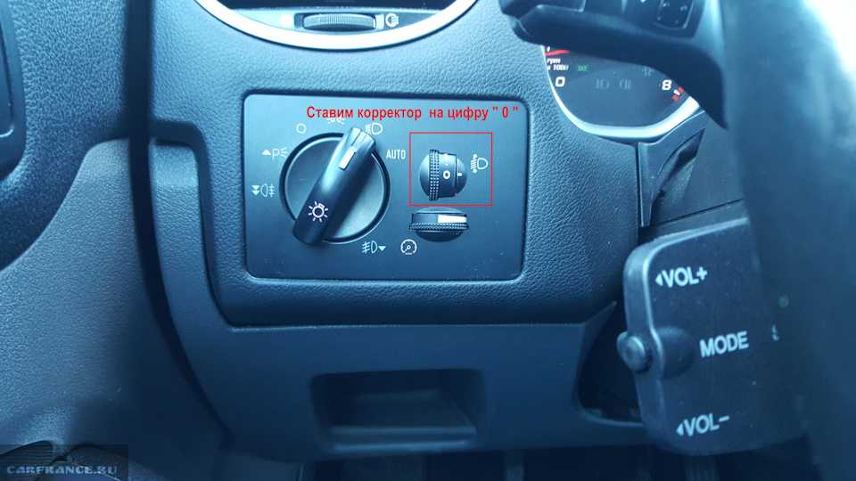 - Выставляем ручку электрокорректора на приборной доске в позицию «0».