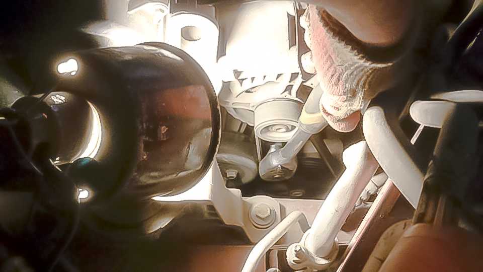 12. Головкой на 15 отверните нижний болт крепления генератора.