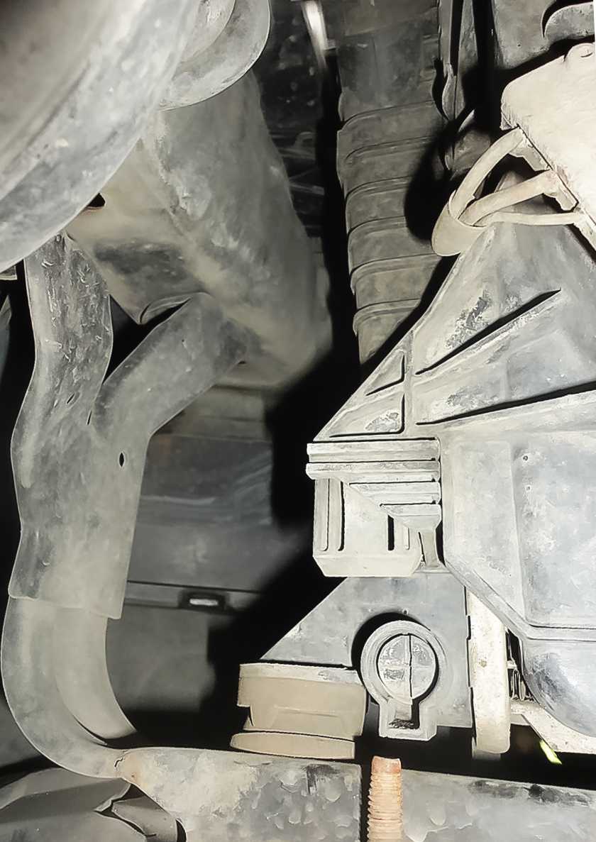 Внимание: Далее, соблюдаем осторожность, чтобы не прикоснуться к горячим элементам выхлопной системы. 5. Залезаем под автомобиль, ключом-шестигранником на 4 отворачиваем пять винтов крепления и затем снимаем нижнюю защиту двигателя