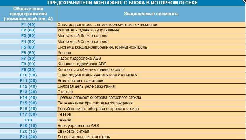 | 18 | 10А Питание лямбда-зонд, подогреваемый кислородный датчик |
