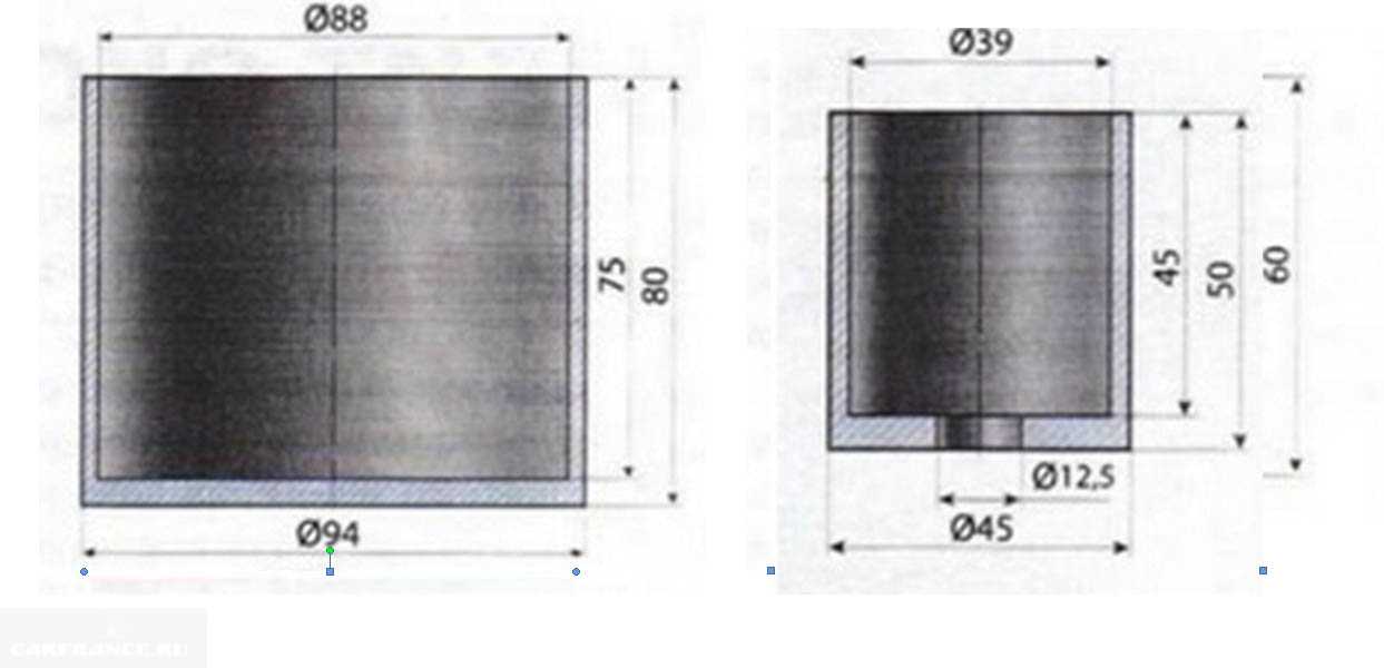 Перед тем как менять сайлентблоки задних рычагов на Фокусе, нужно позаботиться о том, чтобы весь необходимый инструмент и приспособления были под руками. В первую очередь будут необходимы либо съёмники с захватами для выпрессовки сайлентблоков, либо пресс. Выбить втулки кувалдой, даже имея проставки нужного диаметра, получается далеко не всегда. Но проставки всё-таки необходимы. Вот их чертежи и размеры. Это проставка для выпрессовывания сайлентблоков подпружиненного заднего рычага: