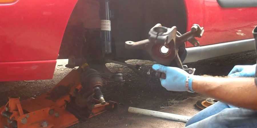 Обязательно нужно слить масло из коробки переключения передач, ведь без демонтажа привода не обойтись. После снятия тормозных колодок и суппорта необходимо демонтировать привод колеса. Затем следует выпрессовать шаровую опору из кулака. После этого нужно снять ступицу и тормозной диск. Это позволит легко извлечь гранату.