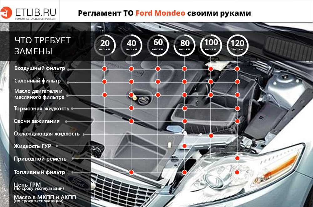 Здесь техническое обслуживание имеет много общего с предыдущими ТО, хотя обладает некоторыми особенностями. Для моделей Ford Mondeo 4 и 5 предусматривается: